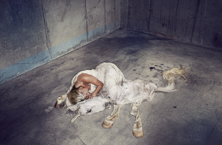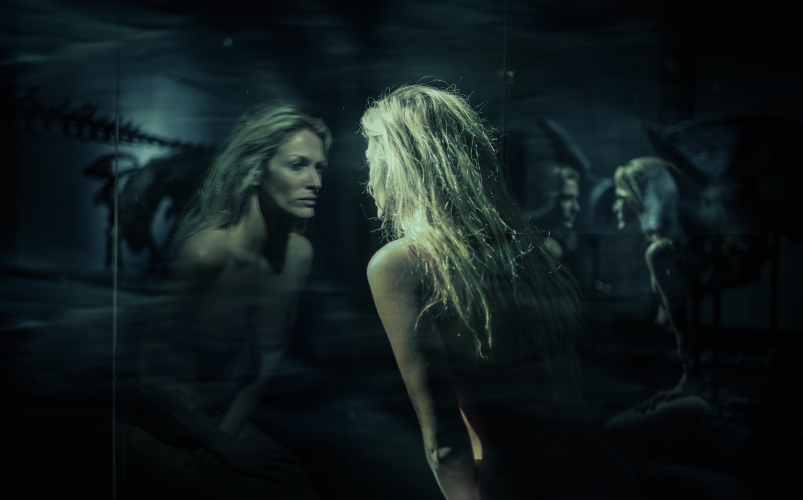 Fine Art Pigmentprint, Alu Dibond, Acrylglas (Anthropocene-Performance II in original Muse- umsvitrine, Senckenberg Museum Frankfurt/ M.) 80 x 120 cm | Ed. 6/ 2 E.A.