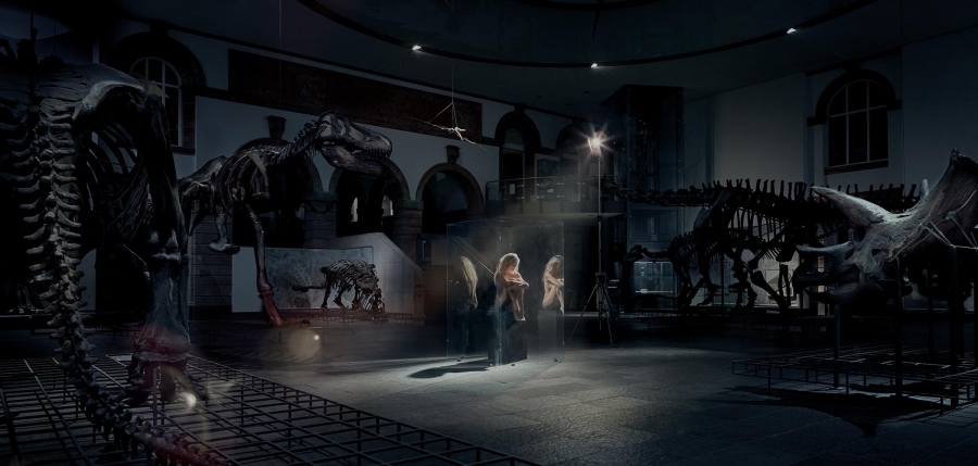 Fine Art Pigmentprint, Alu Dibond, Acrylglas (Anthropocene-Performance II in original Muse- umsvitrine, Senckenberg Museum Frankfurt/ M.) 143 x 300 cm | Ed. 6/ 2 E.A.